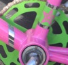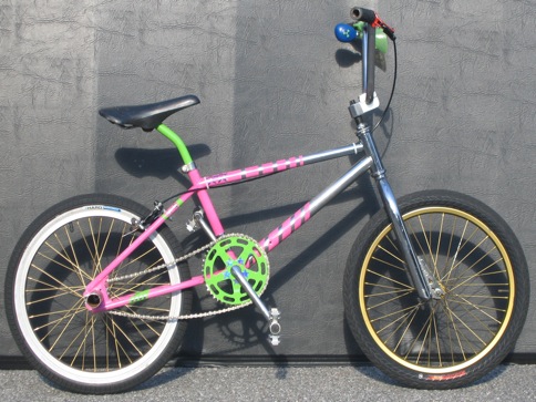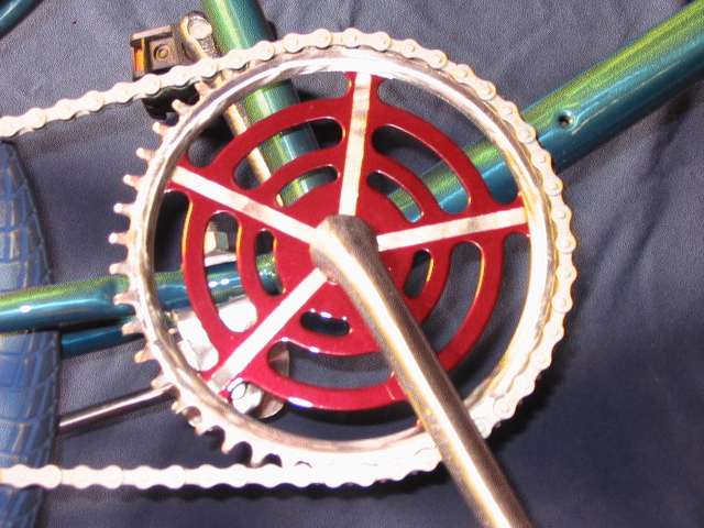 I completely restored my FS500 from head to toe, hand sanding washers, bolt heads, spokes, etc. I wanted to keep it entirely original with restoring the original brake assemblages, seat, hand grips, sprocket, and of course the GOLDENBOY BLUE tires. I hand sanded the frame and accessories. The paint is a two tone application. The first part being the main body color which is an atlantic blue hue cut 50/50 with clear coat. The second color is a Raspberry metallic that i used to add some detailing. Separating the two colors is a 1/8 inch band that shows the natural polished finish of the metal frame itself. She’s a dream to ride!